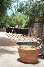 The indigo dyers of Amarapura(Amarapura is 11Km south of Mandalay in Shan State and is a centre of silk and cotton weaving. Indigo blue is a staple dye colour, particularly for the men's longyis. Today the dyers use chemical dye - from China - and not natural indigo.)As you walk through the streets of Amarapura you can hear the constant 'click' of the looms and see the various stages of the weaving process taking place in houses throughout the town. In September 1998 I found the indigo dyers by following back to source the flow of indigo coloured water - a bi-product of the rinsing process during dyeing. Although there were individual dyers working in a small way the main dying was being carried out by a family who had been dyers for several generations. all text & images © Pamela A Cross